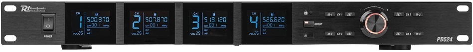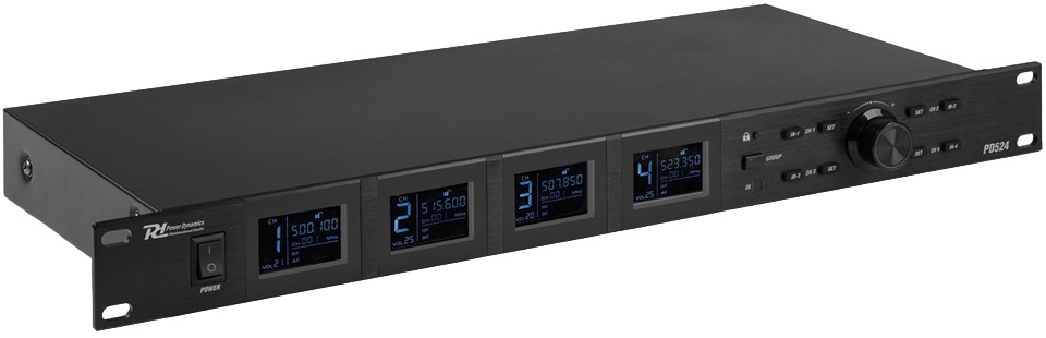 O PD524 é um sistema de microfone sem fios profissional equipado com 4x 100 canais e foi concebido para apresentações ou eventos de maior dimensão. O recetor com ecrãs LCD dinâmicos e nítidos garante uma transmissão livre de interferências, juntamente com o silenciador de alta qualidade e o sintetizador PLL. O sistema de microfone PD524 trabalha na banda de 500-530 MHz e é adequado para vozes, apresentações, treino e outras aplicações de PA.