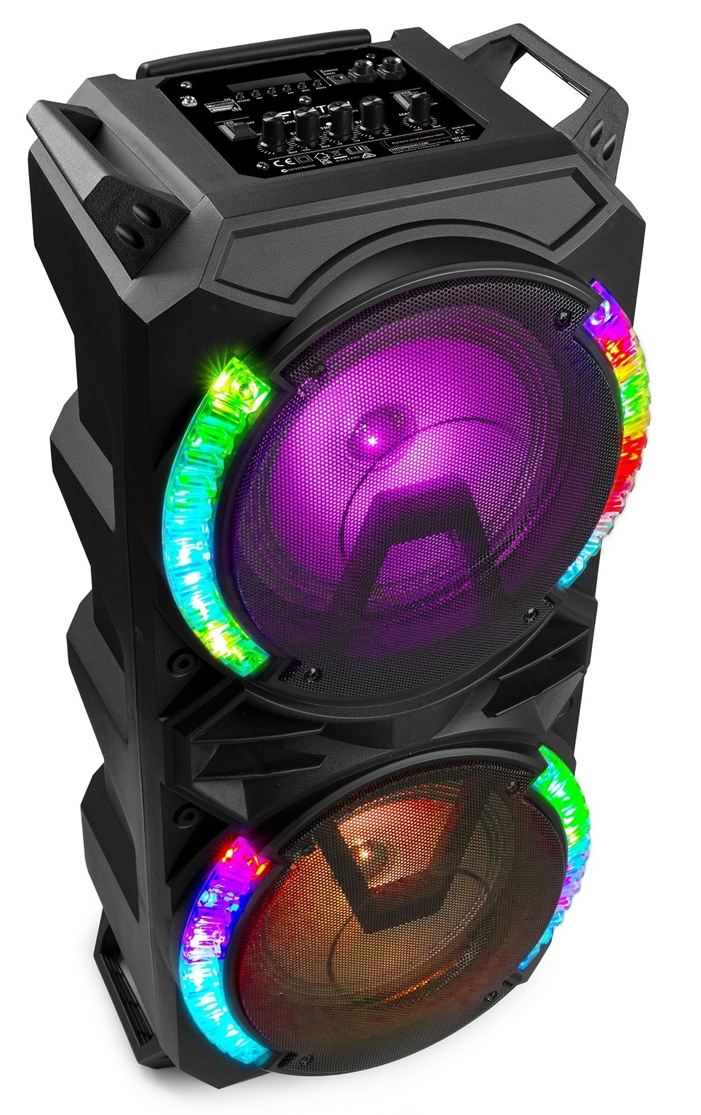 Coluna Amplificada Karaoke 2x 8" 900W USB/SD/BLUETOOTH c/ Efeitos LED RGB - FENTON