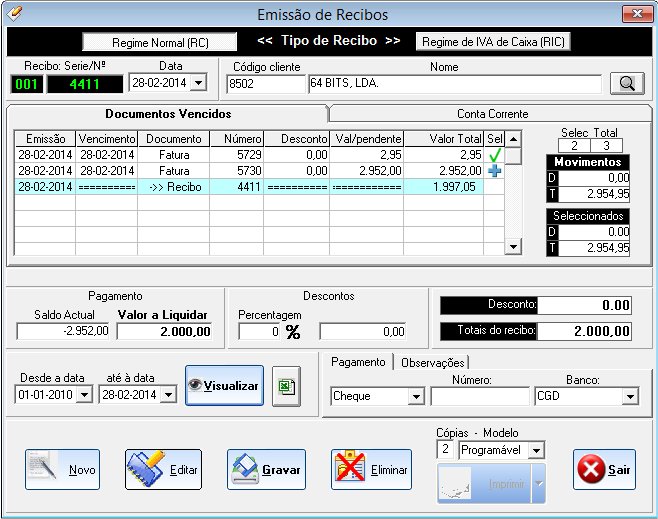 Controlo automático de pagamentos e recebimentos.