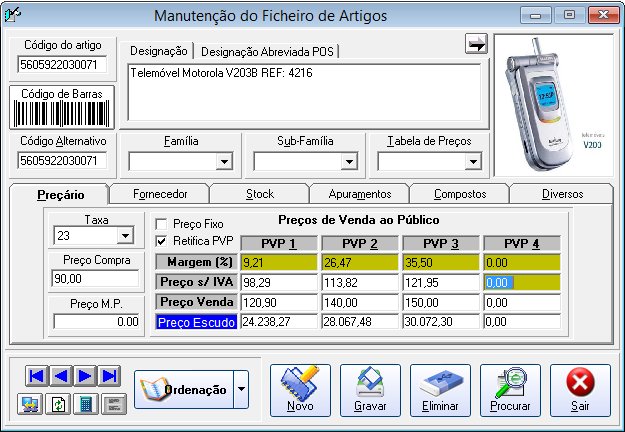 Controlo de números de série, imei's, cores, validade, etc...
