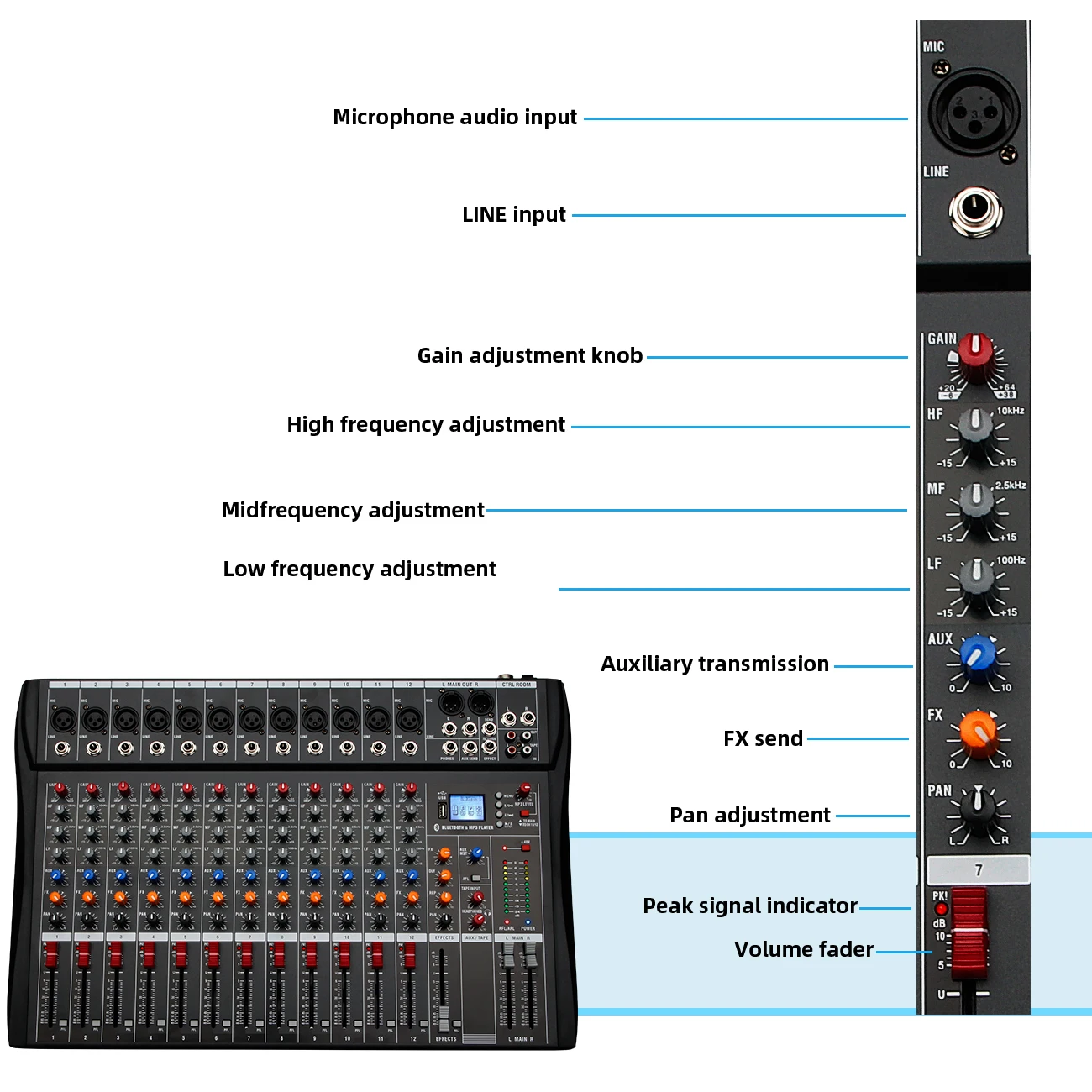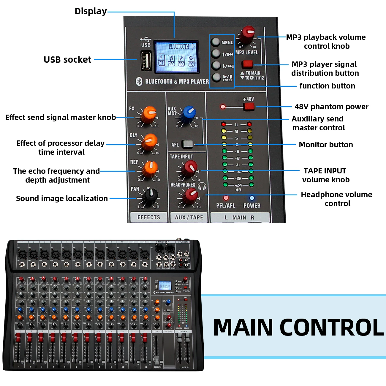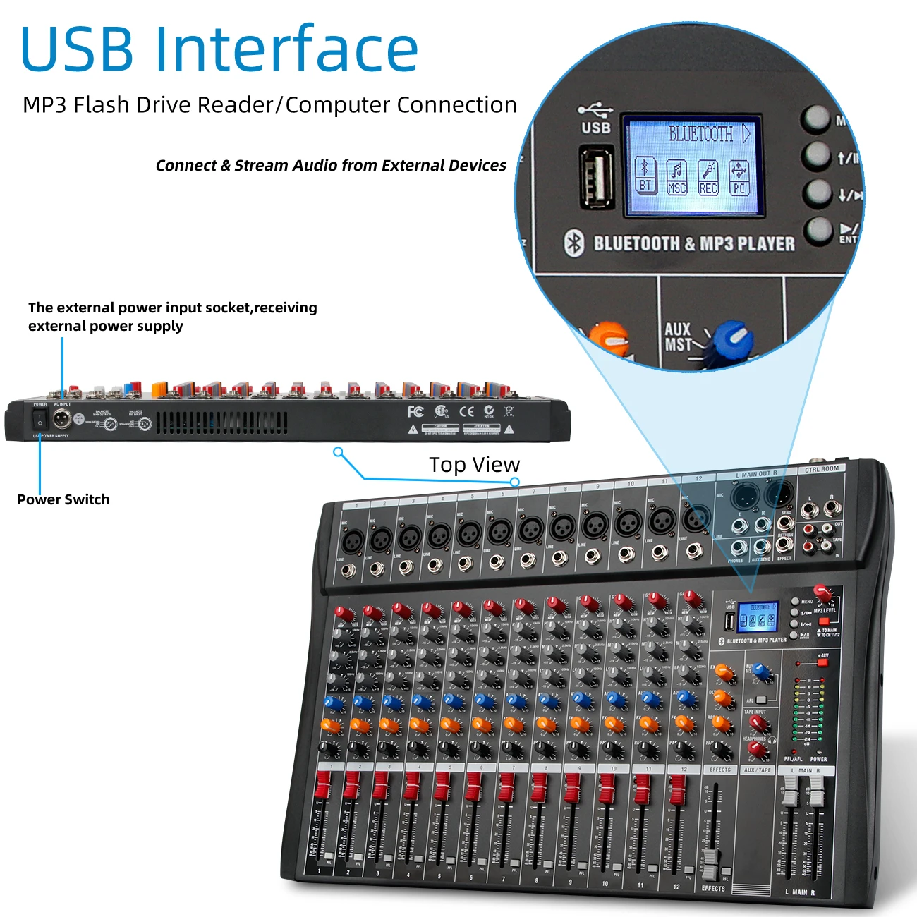 Mesa de Mistura profissional de 6 canais, entrada USB MP3, 48v, alimentação fantasma, consola DJ