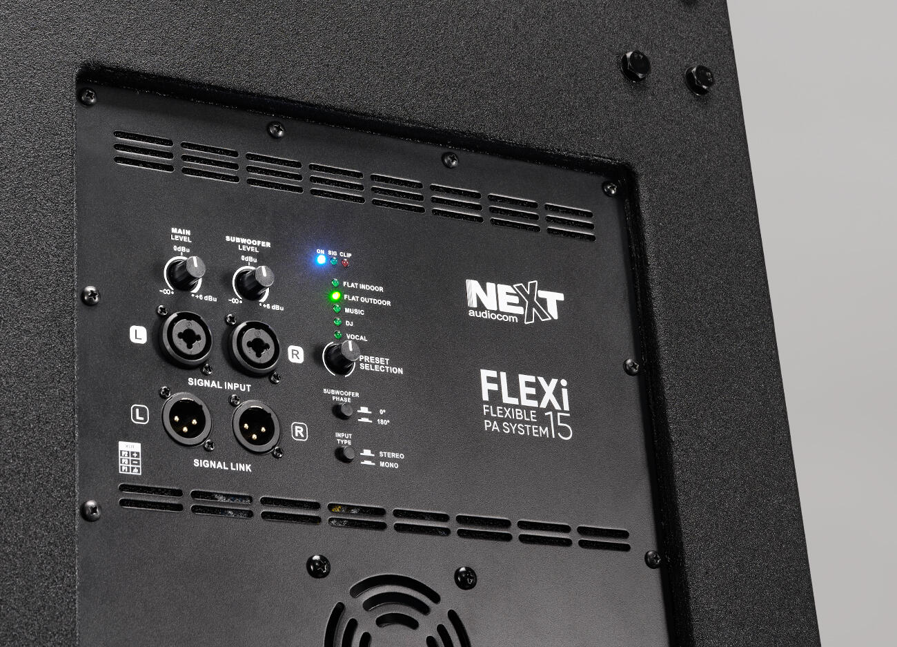 O FLEXI15 é um sistema PA compacto 2.1 ativo de 2.000 W com um mecanismo de processamento DSP integrado que forma um sistema compacto e precisamente combinado com propriedades acústicas profissionais exigidas por DJs e músicos para uso portátil ou instalação permanente O subwoofer carregado por reflexo de 15 polegadas fornece graves potentes e precisos som enquanto os satélites com drivers médios de 8 polegadas e drivers HF de 1 polegada são responsáveis por médios de som naturais e agudos cristalinos.