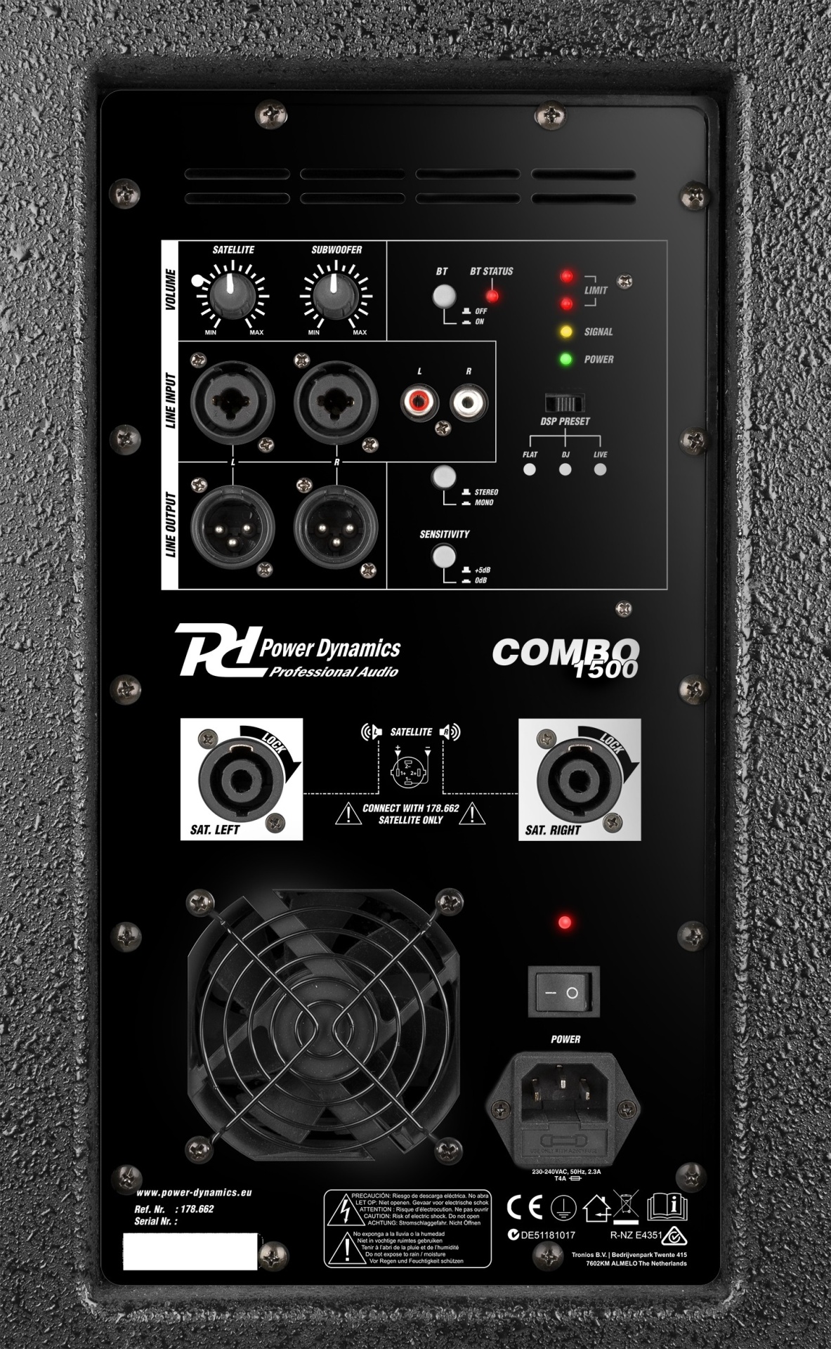 Este subwoofer activo de 15" PA tem uma potencia musical de 500W, gerando uma pressão acustica de 128dB. O subwoofer conta com crossover interno para cortar as frequencias altas e mandar para os satelites. A unidade conta com saida de sinal completa para conectar a outro subwoofer e saida filtrada para os satelites. O crossover interno pode ajustar-se a 50Hz ou 150Hz.